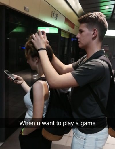 . Mám šťastie že na mojej škole je viac výmenných študentov a chodíme spolu do školy, čiže ak sa mám stratiť tak nie sám. S výmennými študentmi neni nikdy nuda čiže aj v metre robíme blbosti a to je super. Keď sme dorazili na našu zastávku tak sme išli do školy, kde sme zamierili do kaviarne a počkali na ďalšiu hodinu. Keď zazvonilo rozlúčili sme sa a každý sme išli do svojej triedy. Zase keď sa skončilo vyučovanie, sme sa stretli a išli sme si voľným teplom na metro. Ja som išiel snimi sle potom som sa zmenil smer a išiel som do obchodu rodičov kde som počkal host mamu a išli sme domov. Prišli sme domov porozprávali sme sa a išiel som do izby a to je koniec dňa.