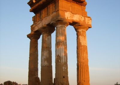 Chrám Dioskurů (Tempio dei Dioscuri) – původní stavba pocházela ze stejné doby jako ostatní chrámy, zřícený chrám byl ale znovu postaven v 19. století. Dnes zde stojí pouze čtyři sloupy.