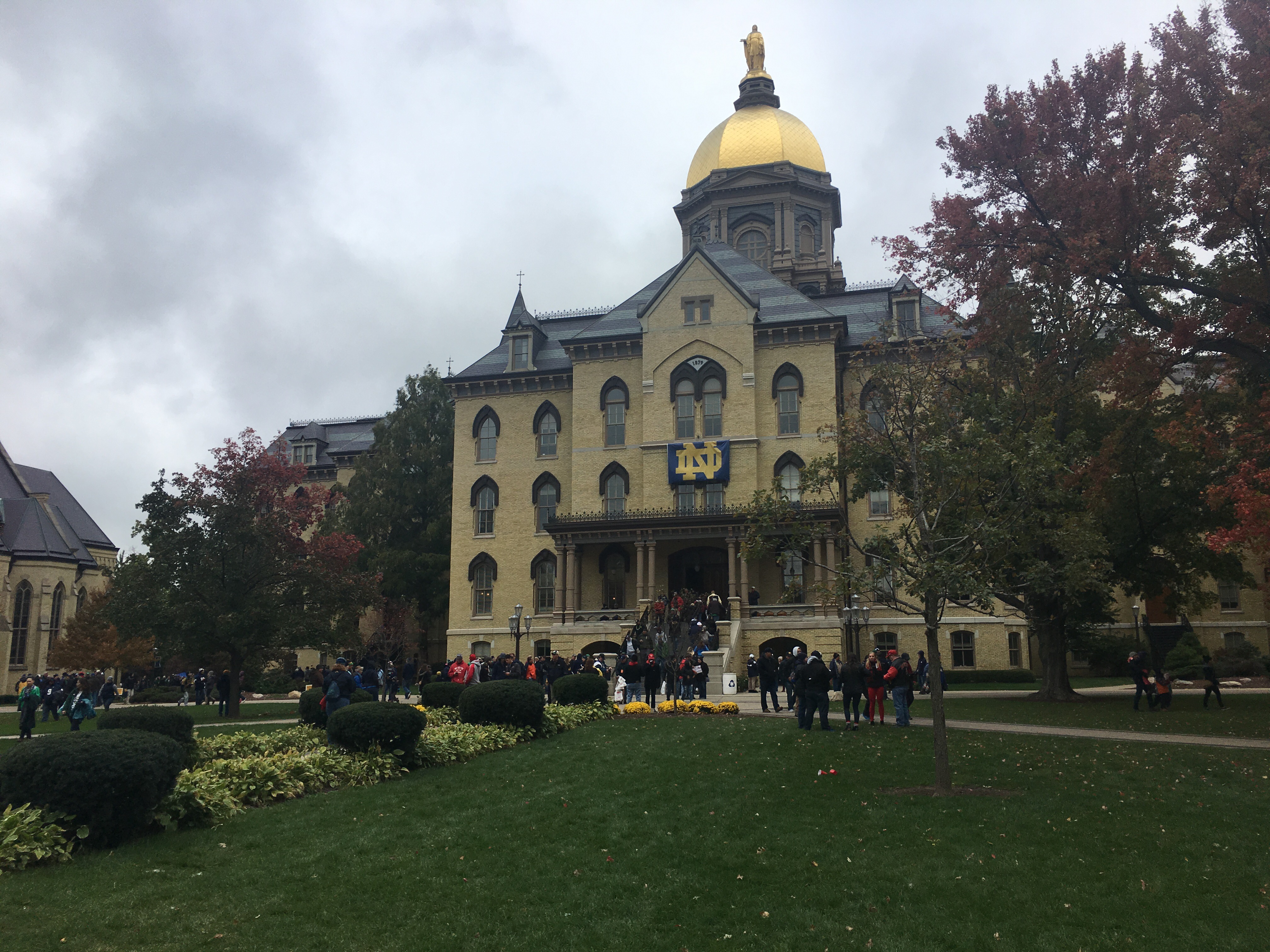 Sobota byla důvod proč jsme jeli do Indiany. Ráno jsme vstali v asi 6 hodin a vydali Směrem k jednomu z nejznámějších stadionů a kampusů v USA. – Notre Dame. To jedna z Nejznámějších univerzit na světě, taky nejlepších… my jsme tam zatím jeli jen abychom se podívali na Jeden Z nejzajímavějších zápasů z celého USA college fotbalu-Notre Dame a North Carolina state. Přijeli jsme tam asi v 8 hod. Ráno všem zápas začínal až ve 4:30pm.Takže jsme si dovezli všechno vybavení, abychom se nenudili před zápasem-jídlo, pití, židle, stůl atd. Říká se tomu Tailgators. Mezitím co rodiče, John a Sindie seděli u auta a mrzli (doslova, byla fakt zima) já jsem se procházel po kampusu. O této univerzitě ví skoro každý kdo se zajímá o dobrý fotbal a kvalitní vzdělání. Předtím než jsme jeli do Indiany, slyšel jsem od kamarádů a různých lidí různé povídky o Notre Damu a tom kampusu…byly pravdivé. Ta Univerzita je něco neskutečného, ta atmosféra, duch lidí okolo, budovy, parky, stadióny (4) atd…jednoduše jsem nebyl na žádném jiném místě kde bych SKUTEČNĚ chtěl studovat v budoucnosti než tam. Stojí to za to.