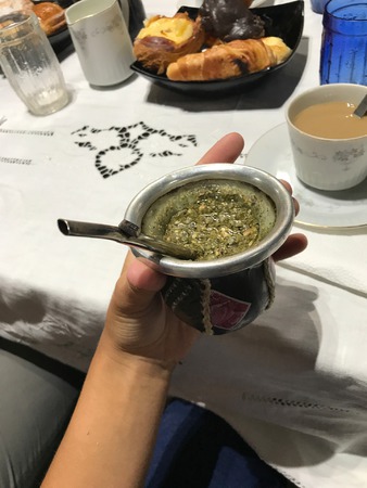 Poprvé jsem ochutnala “Mate”. Je to pití typické pro Argentinu. Jsou to nadrcené listy z rostliny jménem Yerba mate zalité vodou a cukrem. Pije se to brčkem a všichni pijou z jednoho hrníčku. Má to zvláštní chuť ale začíná mi to chutnat.