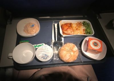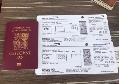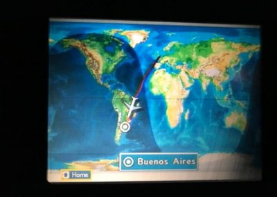 Cesta do Buenos Aires trvala 14 hodin. Ještě před odletem jsem si vzala půlku kinedrilu, takže jsem prvních 5 hodin prospala. Seděla jsem sama. Vedle mě byla 2 volná místa, takže se mi spalo opravdu pohodlně. Po probuzení jsem si vzala druhou půlku kinedrilu a spala jsem dalších 5 hodin. Letěli jsme přes noc, takže jsme měli za celých 14 hodin jen 2 jídla (teda pokud jsem ty ostatní neprospala). Když jsme přistáli šla jsem si vyzvednout kufr a hurá za novou rodinou.