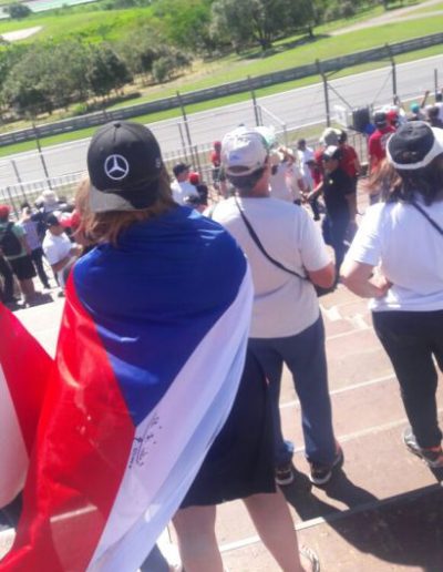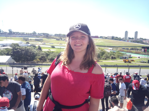 Ale bylo to úžasný, něco absolutně skvělýho a nepopsatelnýho, taky jsme si koupila kšiltovku Mercedesu. V neděli to bylo zajímavý, ráno, hned jak jsme došli na místo, jsem volala na Slovensko na první OM, byla to sranda, jelikož nějací nalití týpci si mysleli, že jsem youtuberka, tak mi začali do toho kecat (ale jak jsem se doslechla, aspoň to pobavilo), nakonec se mi povedlo je jaksi odeslat pryč a dokončit hovor. Potom jsem šla hledat své drahé přátele, takže jsem musela projít celej sektor, kde byla hromada ne zrovna střízlivých osob mužského pohlaví (vážně se snažím najít adekvátní příměr pro kupy ožralých neandrtálců), každopádně výsledkem mojí (a vlastně každé třetí slečny) procházky dopadla tak, jak kdybyste šli s hromadou banánů okolo pavilonu opic. Můžu říct, že zkušenost jak asi osm skupin po dvaceti chlapech řve a tleská bych si klidně odpustila. Ale potom co mě jedni z nich odchytli a než mě pustili tak jsem alespoň musela svolit k fotce, jsem se konečně dostala k děckám. Později mi bylo nabízeno pivo a po informaci, že je mi šestnáct, i nevěřícný pohled a spousta pozornosti všude okolo. Díky bohu, pak začal závod a ten byl skvělej, jelikož Hamilton v sobotu boural, tak startoval z posledního místa, pak se dostal na první místo, ale pak kvůli pár minutám v boxu to zakončil pátý, vyhrál to Vettel.