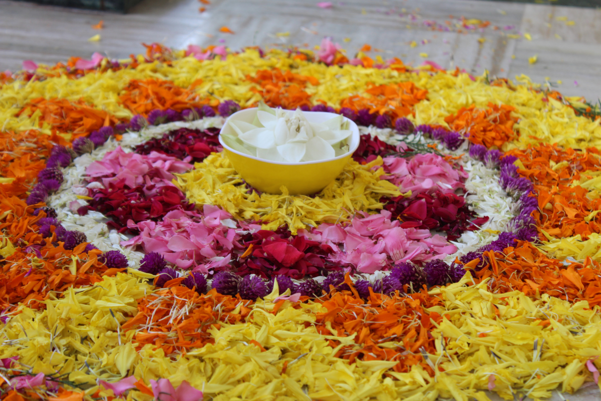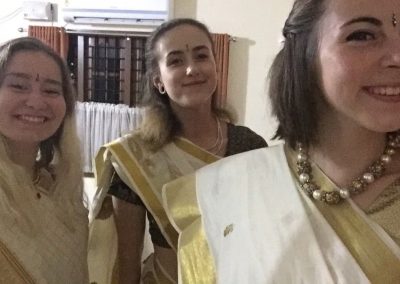 Minulý týždeň ma vzala moja 2. host rodina do Kochi k nejakým známym mojej 1. host rodiny, aby som oslávila festival Onam, videla novú kultúru a zažila znovu niečo nové! Onam je festival, ktorý sa oslavuje len v tom štáte “Kerala”. Ľudia vytvárajú hociaké /mandale/ z listov kvetov a tak vznikajú zaujímavé vzory! My sme svoj vlastný a ďalšiou výmenou študentkou z Francúzska a mojou 2. host sestrou spravili na terase domu starých rodičov! Najprv mi to prišlo divné keďže kvety moc nemusím, no po chvíli to už bola pecka! Na koniec sme pridali lotusovy kvet a tadaaaa! Všade na uliciach, pri chrámoch ste mohli nájsť takéto vzory vyzdobené z listov! Dokonca sa cez tento festival pije aj originál mlieko, ktoré je hnedé s kúskami ryže a nie, nie je sladké. Naozaj, 2 kilá cukru je pre nich stále málo! Sami mi vraveli, že to je pre nich normálne a tak to aj vyzeralo keď to gacaki piť ako čaj. Zatiaľ čo ja som to jedla asi 30 minút s čajovou lyžičkou a zapíjala čistou vodou inak by som sa premenila na cukor! No bolo to super!