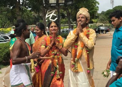 Neviem ako no za ten mesiac čo som tu sa mi podarilo byť už na 2 svadbách. Chcem ísť znovuu! Vážne….Po 1. krát ma zobral najlepší kamarát môjho otca Niketu spolu s rodinou, aby som videla ako to tam chodí a všetko okolo toho. Deň pred sme šli na “reception”, kde sa ženíchovi a neveste gratuluje, dávajú dary, robia sa fotky. Nejaký ind by povedal, že to bola nuda lebo už to je mainstream no pre mňa to bolo ako v raji. Na druhý deň ráno sa už konala svadba. Ah, rada by som to zažila znovu a znovu….Pár mal na sebe tradičné svadobné oblečenie, už len z toho som bola mimo. Robili rôzne posvätné rituály ako je uctievanie si bohov a rodičov. Nedá sa to vysvetliť no jednoducho hinduisti strašne veria v bohov, o to silnejší zážitok to bol. Ovešaní kvetmi, prikrytý šálom, požehnanie od rodičov či dávanie “snebneho prsteňa” na nohu a náhrdelník, ktorý by si nevesta do smrti nemala dať zo seba dolu…Živá tradičná muzika, ženy naokolo chodili v sárí (ani ja som nebola výnimka) no a múži, bď mali nohavice a košeľu alebo mundu (kus látky obtočený okolo pása). Nechýalo ani indické jedlo servírované na banánovom liste či moje najobľúbenejšie sladkosti……No moment kedy to bolo ako z rozprávky prišiel až vtedy, keď sa oficiálne stali svojími a ľudia na nich zacali hádzať ryžu. Ok ryža jak ryža no jednoducho ten pocit! Dokonca si so mnou zopár ľudí chcelo spraviť fotku no najsladšie bolo asi malé 4-5 ročné dievčatko, ktoré sa strašne hanbilo. Ayyyyyyyyy