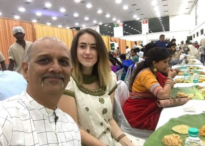 A čo 2. svadba? Na tú ma zavolala Anusri ( dievča, ktoré bolo minulého roku na výmene v Prahe). Samozrejme, že sa nedalo odmietnuť. Tak teda po mňa prišiel jej ocko a zobral ma k ním domov, kde mi požičiali sárí v ktorom som šla, no a zároveň sme sa s Anusri stretli po 1. krát konečne! Ženil sa syn nejakého majitela najväčšej textilnej továrne v Chennaii. Bolo to na rovnakom mieste ako svadba pred tým no teraz som to nevedela rozoznať, všade samá výzdoba, tu fotka, tam video a zrazu dron a kopec ľudí ktorí sa ti zdravia a vítajú ťa. Neuveriteľné. šli sme zablahoželať mladomanželom,no keďže sme extra tak nás zobrali hned dopredu aby sme nemuseli čakať v tom dlhom rade yuhuuuu. Myslela som, že to bude svadba no nakoniec som sa dozvedela, že sú svoju už mesiac no chodia z miesta na miesto aby sa mohli s každým zvítať lebo čas a kapacita ľudí im to nedovolí tak toto bolo už ich 5.miesto kde boli. Nepochopím. No samozrejme, všetko to bolo úžasné a neopísaťeľné.