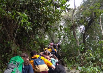 Podle jistých teorií je tento vlak jediným dopravním vlakem v Peru. Městečko Machu Picchu a městečko, ze kterého jsme vyjížděli, pojí pouze jedna kolej a zhruba hodina a půl cesty. Vlak mě nejvíce zaujal skleněnou střechou a velmi velkými okny. Čili máte možnost vidět tu nesmírnou hloubku údolí, ve které se právě nacházíte a projíždíte. Nechtělo se mi tomu věřit, v jaké nesmírné hloubce jsme se to nacházeli… Také jsme v tomto vláčku dostali velmi chutný dort a pití. Já si vybral hruškový džus! Budu toho litovat do konce života…