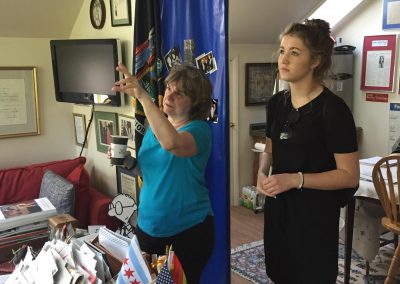 Když jsem se v lednu přestěhovala a konečně se s ní seznámila osobně, teprve se mi začalo rozkrývat, s kým vlastně bydlím v domě. V její domácí pracovně všude na zdech visely její fotky s americkými prezidenty, nejrůznějšími světovými osobnostmi a taky například fotka s papežem, se kterým (jak mi později jen tak mezi řečí vykládala), se zná osobně. Taky na zdech visely děkovné dopisy od George Bushe a Baracka Obamy. Nejvíce mě zaujal plakát „Bertini poskytla jídlo 727 milionům lidí“. Mrazilo mě, když jsem si uvědomila, kolik zajímavých rozhovorů a zkušeností mě s ní čeká. V této pracovně jsem později trávila mnoho času učením, zatímco ona byla na skypovém hovoru s kolegy z celého světa. Jedinou ‚nevýhodu‘ vidím v tom, že jsem se trochu odnaučila uklízet (což se teď nelíbí mojí vlastní mamince), protože na to jsme měli 3x týdně služebnou.