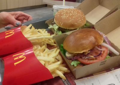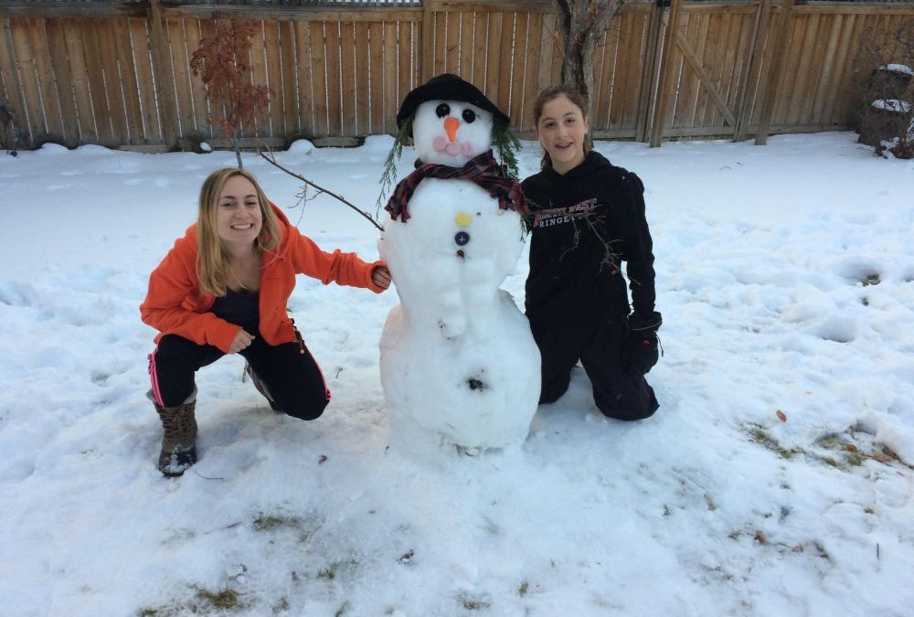 V Calgary je teď šílená zima ( většinou tak mínus 15) a to prý ještě nic není, tak jsem zvědavá na tu pořádnou zimu. Má to ale hrozně výhod. S Allie se koulujem, postavily jsme sněhuláka, teda sněhulačku a vyrobily jsme jí six- pack :P. Každej den, když přijdu vymrzlá ze školy, tak si uvařím horkou čokoládu a koukám, jak za oknem sněží a jak svítí sousední dům, protože už teď tam mají vánoční světýlka a pak jdu zlechtat svojí malou ségru, která se naučila říkat řeřicha a vždycky to mě křičí, když mě chce hodit do sněhu. Taky jsme si navzájem udělaly make-up a užíváme si všechny tyhle holčičí věci, protože obě máme bráchu a je super si zkusit mít ségru aspoň na chvíli. Na výměně jsem chtěla zkusit všechny ty věci, na které doma není čas a skvělá příležitost byla jít na jogu s host mamkou. Akorát při závěrečné relaxaci začala chrápat a já se tomu začala hrozně smát, ale určitě půjdeme znova. Ségra hraje ringette, tak jsem se zašla podívat a zkusili jsme stolní hokej (místo klasickýho fotbalu), to byla taky dost sranda.