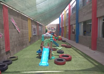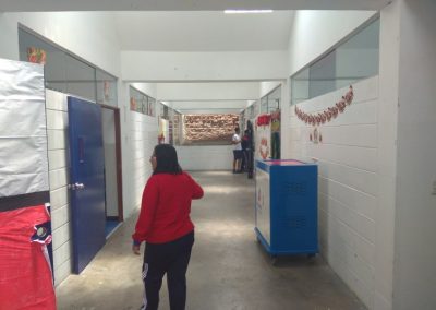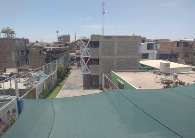 Většina škol v Peru (nebo vlastně všechny co jsem kdy viděl – a to jsem jich viděl opravdu hodně) jsou dvoubarevné. Většinou je to modrá a bílá barva. Z těchto dvou barev je ve škole všechno. To není ale příklad mé školy. Má škola je postavena z šedých cihel, ale všechno je tu barevné! Každé dveře, okna, výběžek na budově.. všechno je natřeno jinou barvou. Budova proto ve skutečnosti budí dojem, že je celá barevná! Což vypadá na první pohled velmi přátelsky.