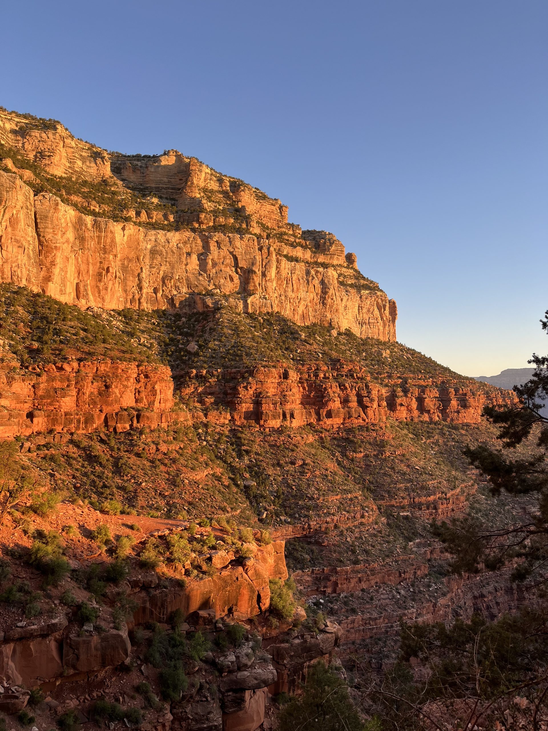 Náš výlet dále pokračoval do Grand Canyonu v Arizoně. Ráno po našem příjezdu jsme vstávali už ve 3 hodiny, abychom už kolem čtvrté (těsně před svítáním) byli na začátku stezky, která vedla dovnitř Grand Canyonu. Naším cílem byl Plateau point, vzdálený cca 12,5 kilometrů. Dolů se šlapalo hezky, takže jsme k němu došli už před osmou hodinou ráno a za sebou měli převýšení cca 930 metrů. Chvíli jsme si tam sedli, užívali si výhled, najedli jsme se a psychicky se začali připravovat na cestu zpět nahoru.