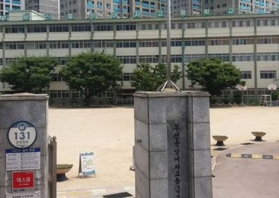 Když jsem se poprvé šla podívat na mojí školu s host mamkou, šlo hlavně o to, abych věděla jak se ke škole dostat. Takže jsem školu viděla pouze z venku a také jsem nepotkala žádné studenty, jelikož zrovna měly hodinu. Je to škola jen pro holky. Oproti mé škole v Praze je opravdu veliká, ale moje mamka mi tvrdila, že pro Koreu je poměrně malá.